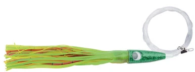 The C&H Wahoo Whacker, with its missile shaped, weighted head, leaves a minimum bubble trail. This shape allows it to run deeper in the water and can be trolled at any speed. Works great on the downrigger.