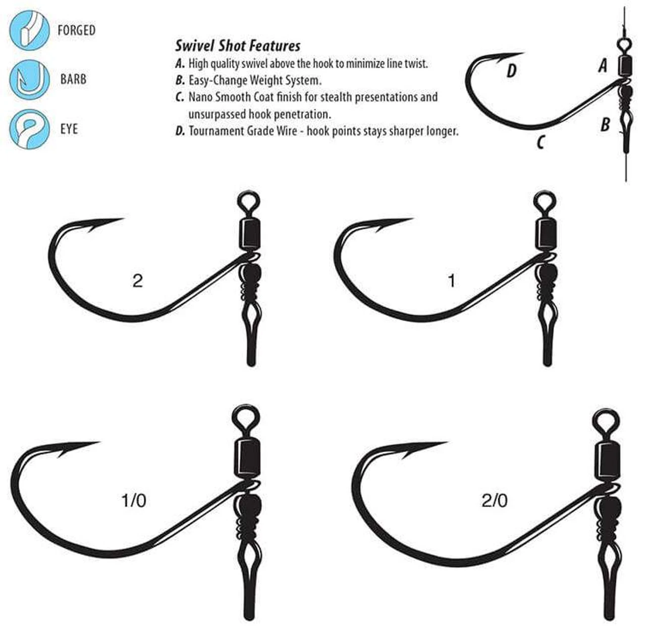 Designed by Shin Fukae, the Gamakatsu G-Finesse Swivel Shot/Drop Shot Hook accepts traditional drop shot hooks with a true swivel connection, so there is no need for unreliable wire loops like other brands. Additional features include TGW (Tournament Grade Wire) and Nano Smooth Coat finish on both the hook and swivel system.