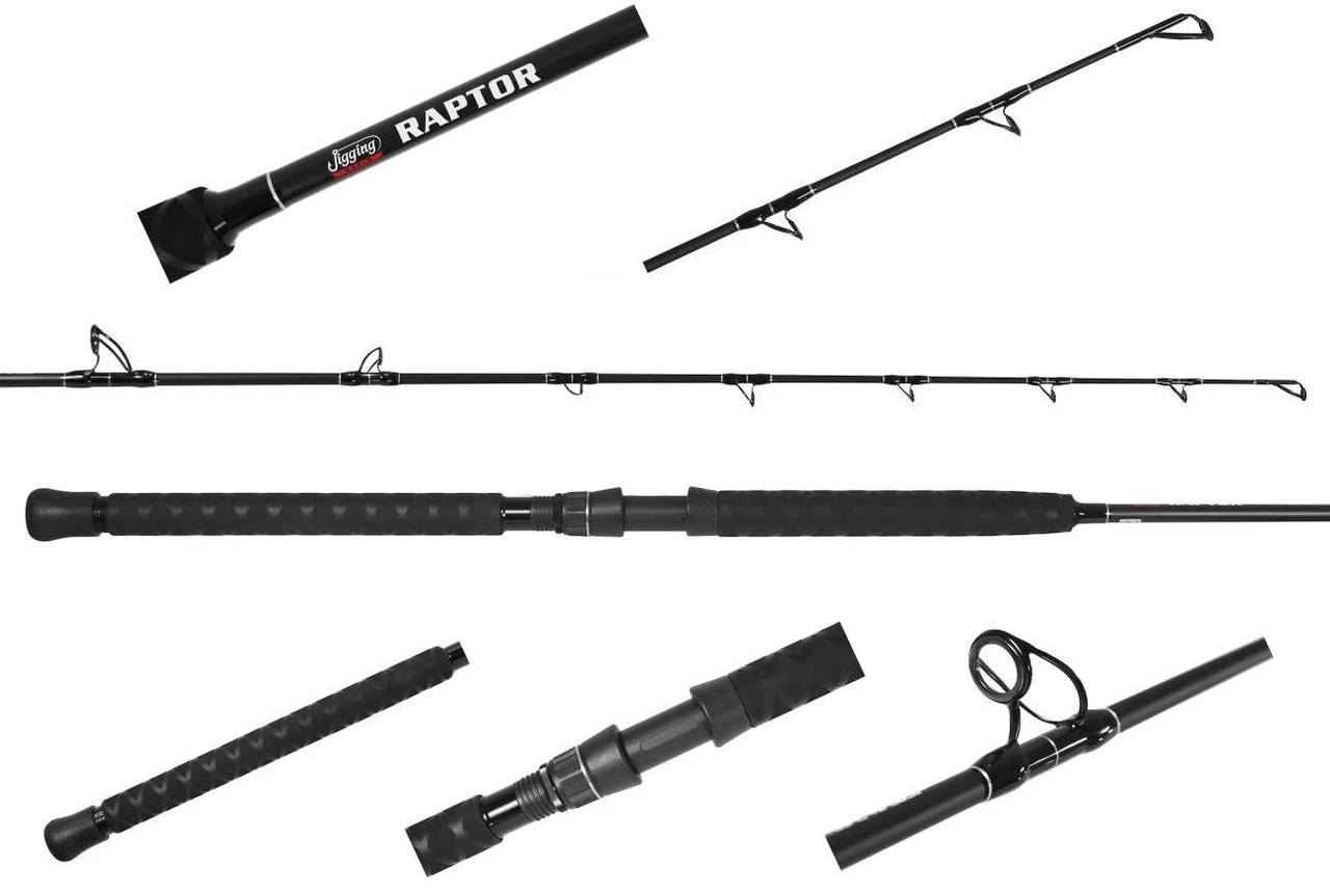 The Jigging World Raptor Rods are designed to handle both inshore and offshore techniques including chunking and trolling. Constructed with a durable carbon blank, these rods are capable of taming almost any fish in our waters. The Heavy model is well-suited for inshore fishing and can handle mojos and umbrella rigs for Striped Bass, as well as Tuna when they are nearby. For overnight fishing trips, the Extra Heavy model is the ideal choice. It can handle larger catches with ease. The Heavy model can accommodate a reel size of up to 30, while the Extra Heavy model can handle a reel size of up to 80. If you are using offshore reels, it is recommended that you opt for the aluminum unibutt version that features a #2 size unibutt.