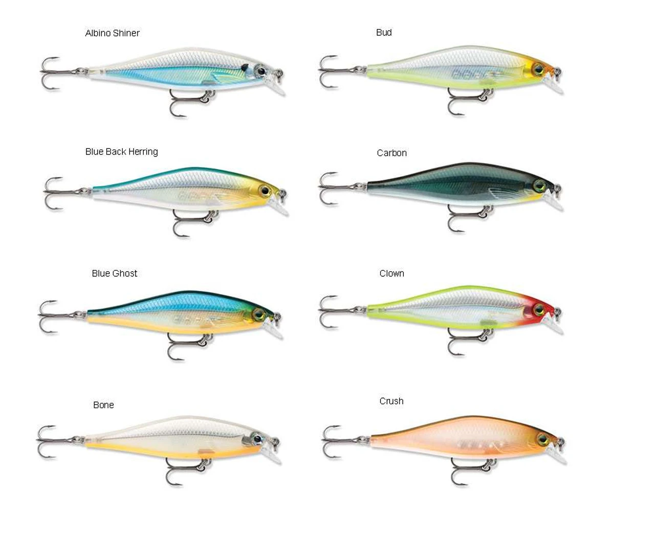 The Rapala Shadow Rap Shad Lure feature a slow-rising action on pause. The larger profile of this lure presents more flash. This also allows for more fishing options from finesse to aggressive retrieves. The fixed weight system of this lure allows it to rise slowly like a dying shad. This lure features slack line look back, where after a sharp snap and generous slack line the lure will spin around and look backwards.
