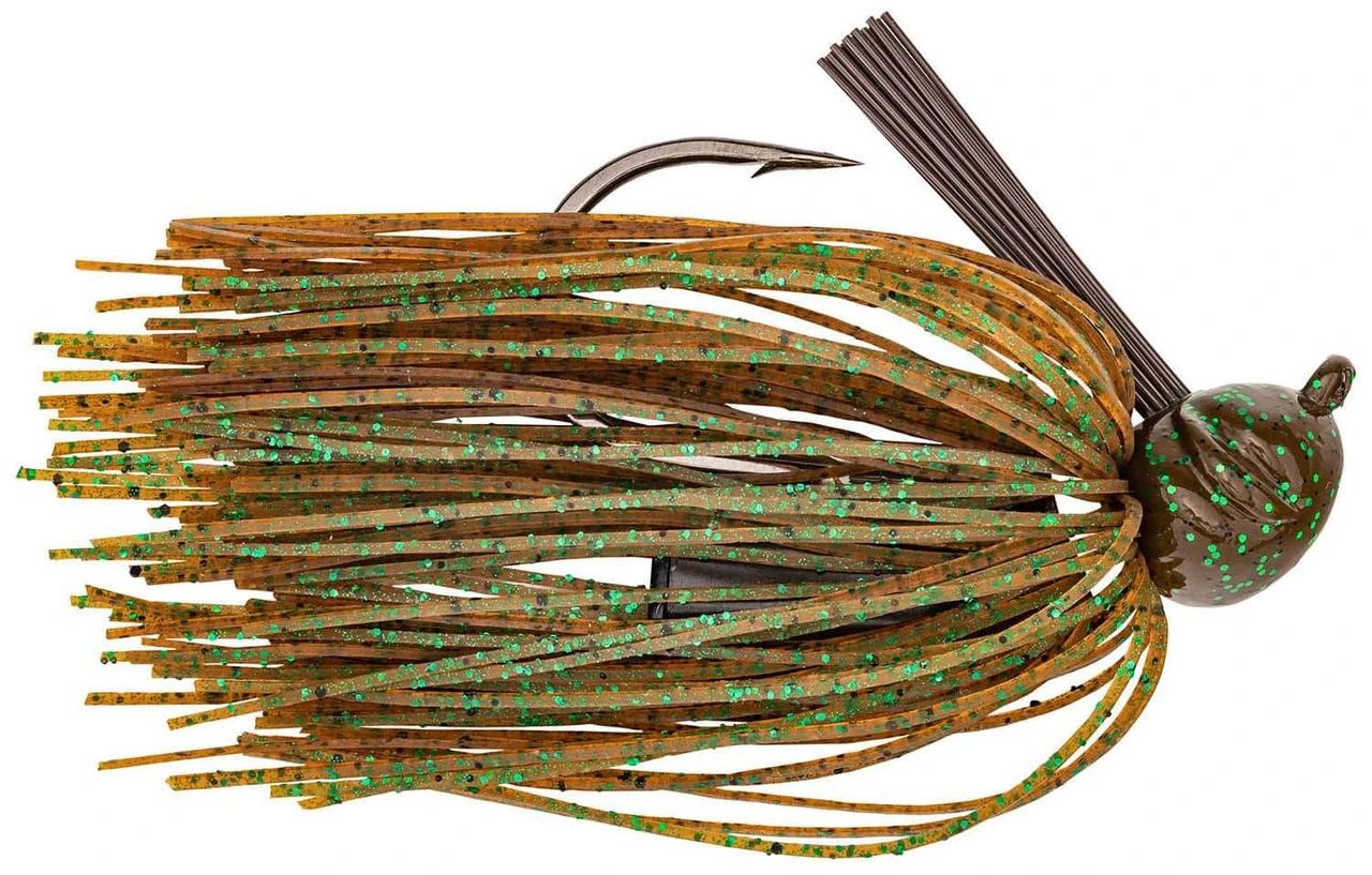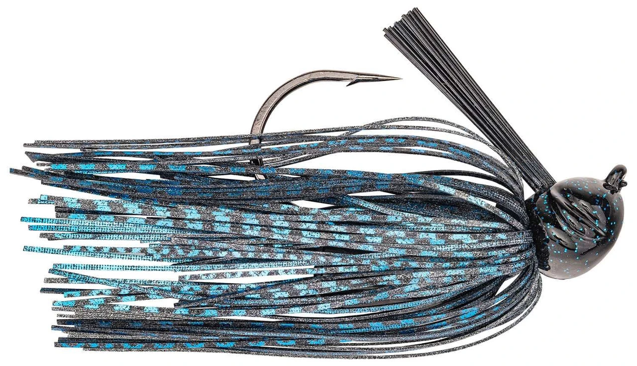 With the Strike King Premier Pro-Model Jig, Denny Brauer set out to design a new jig to complement and improve his Pro-Model Jig. It has a new head design and a unique new rattle design. Both enhance performance in heavy cover. The wide rattle has one big open chamber that enables the rattle to work even when the jig moves to the side. It is positioned to the front of the hook shank, higher off of it and has a barb, all of which make it easier to rig and to hold onto soft plastic and ElaZtech™ soft bait trailers. A larger, more premium Mustad® Ultra Point Hook is used. Premium camo-flash skirts enhance the colors. The Premier Pro-Model® Jig is truly a top-of-the line jig.
