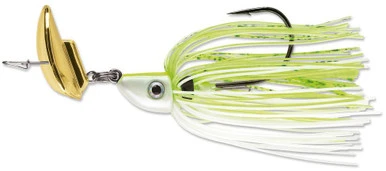 With the popularity of bladed jig fishing absolutely soaring, the Terminator Shuddering Bait looks to get in on the action while mixing things up with an innovative design. The Shuddering Bait is designed to produce a wider sweeping action and hard thumping tempo, as opposed to the tight vibration produced by most bladed swim jigs. This action is achieved by the oversized cup-shaped lip that amplifies water displacement, emulating the erratic movement of feeding predators and fleeing baitfish. The Shuddering Bait is outfitted with premium quality VMC hardware that will withstand the test of time, a stainless steel soft plastics keeper, and an interchangeable lifelike silicone skirt available in a variety of baitfish patterns to help you match the hatch in your local waters.
