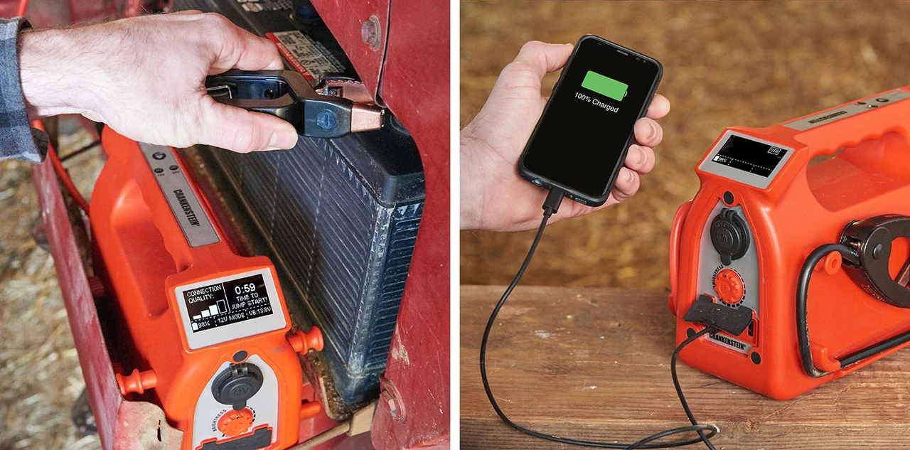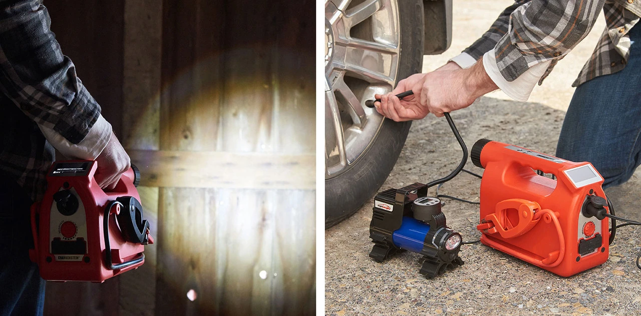 Power 12V tools and accessories through a built-in CLA port: inverters, compressors, OBDII Memory Savers and more. Fast-charges phones, tablets and other portable devices. Includes both USB-C and USB-A charging. Crankenstein recharges in just 6 hours! Get a year of standby power on a single charge too. Built for years of daily use Crankenstein lasts up to 2,000 charge cycles. Lights a workspace up to 30-hours with a 1,000 lumen flashlight. Includes adjustable focus, brightness, strobe, and SOS.