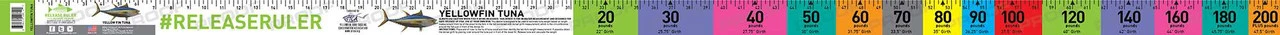 The Yellowfin Tuna is one of the most targeted species by commercial and recreational anglers. This ruler is endorsed by the Yellowfin Tuna Conservation Tagging Association. This yellowfin tuna ruler is a must have for tuna angler to have in their tackle box. This ruler is sturdy, tear resistant and comes with an easy to stow case. Show off your catch by measuring the overall length. This ruler is easy to read with contrasting colors and knowing the length will provide you with a scale to estimate weight. Keep a log on the ruler for your personal best.